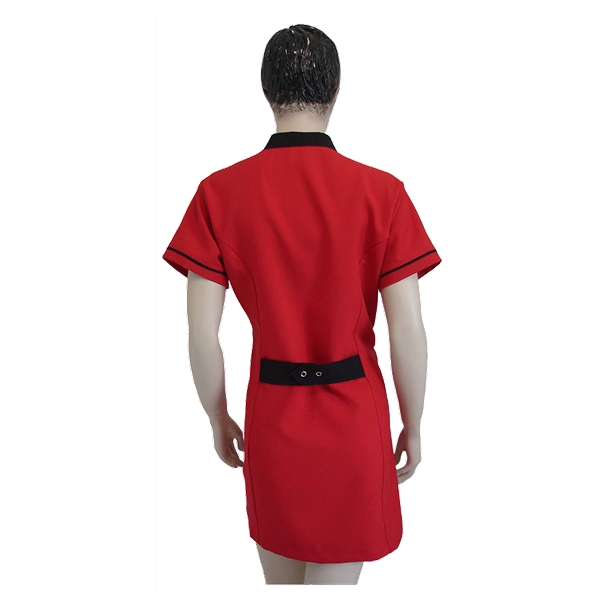 Bata abertura frontal mola, meia manga, dois bolsos inferiores, pequeno cinto traseiro.