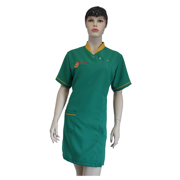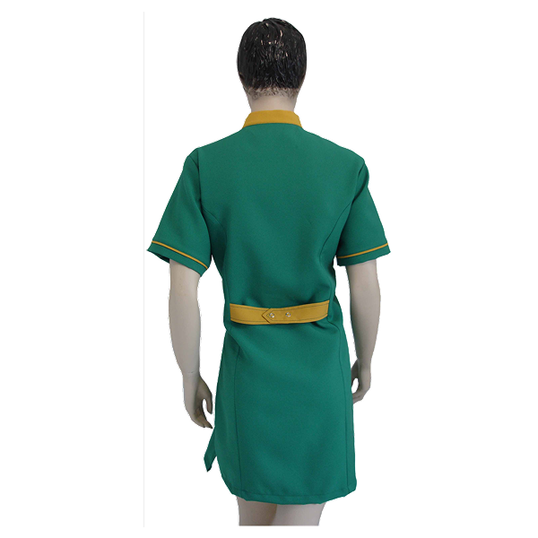 Bata abertura lateral c/mola, meia manga, dois bolsos inferiores, pequeno cinto traseiro.