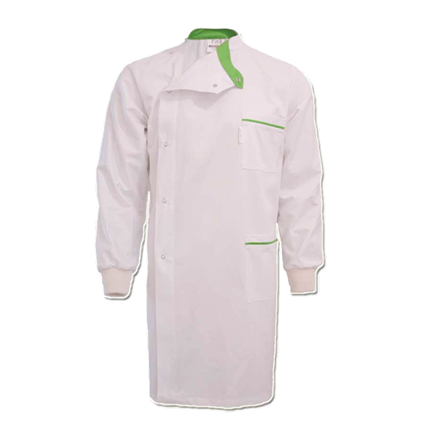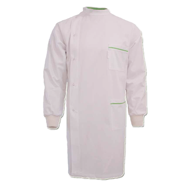Bata abertura lateral, um bolso inferior e um superior, punhos em malha.